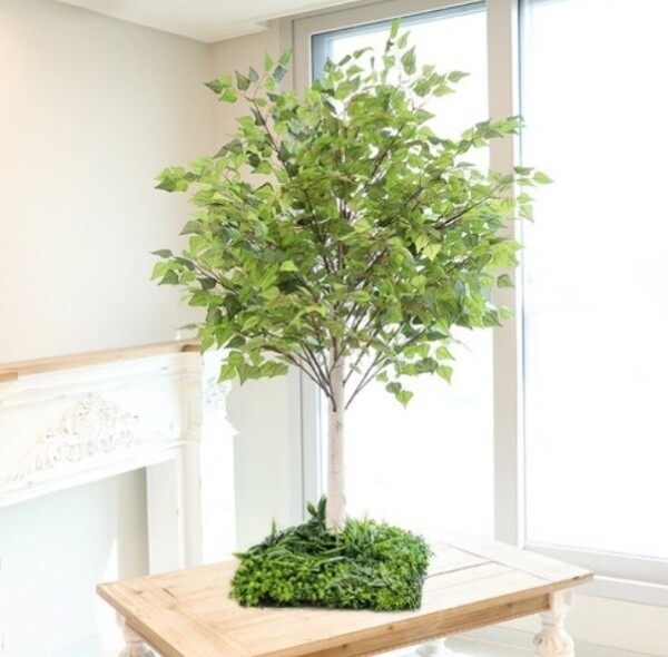 조화나무 자작나무 인조목 받침형 150cm (화이트받침, 그린 인조목)- 로켓배송