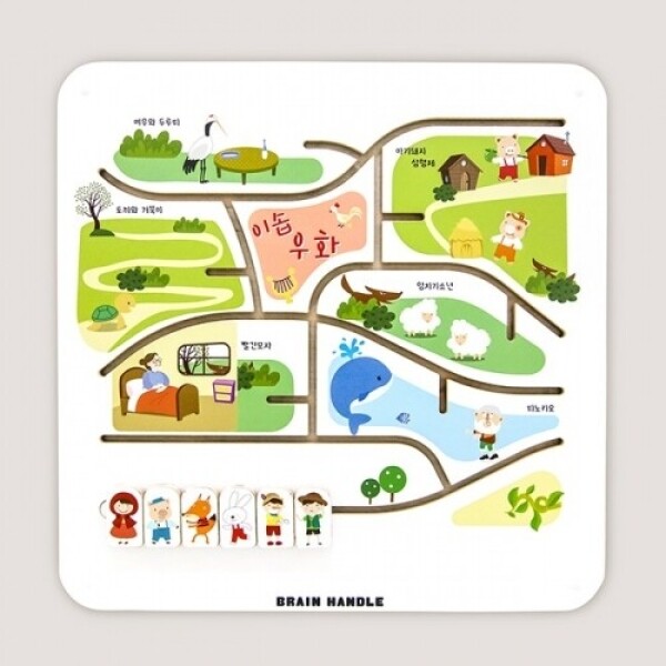 이솝우화 주인공을 레일을 따라 움직이며 캐릭터에 알맞은 우화를 찾아주는 컨셉의 학습놀이 촉각교구